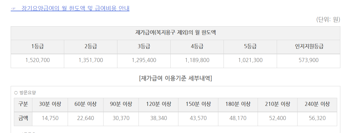 그렇다면 무료로 이용할 수 있는것인가 하고 생각하실텐데 월한도 내에서 15%는 본인이 부담해야합니다. 그래도 매우 저렴하죠? 한도액이 최고 150만원정도이니 15%하면 20만원 안팎의 비용으로 방문요양서비스를 이용할 수 있다는 뜻입니다.