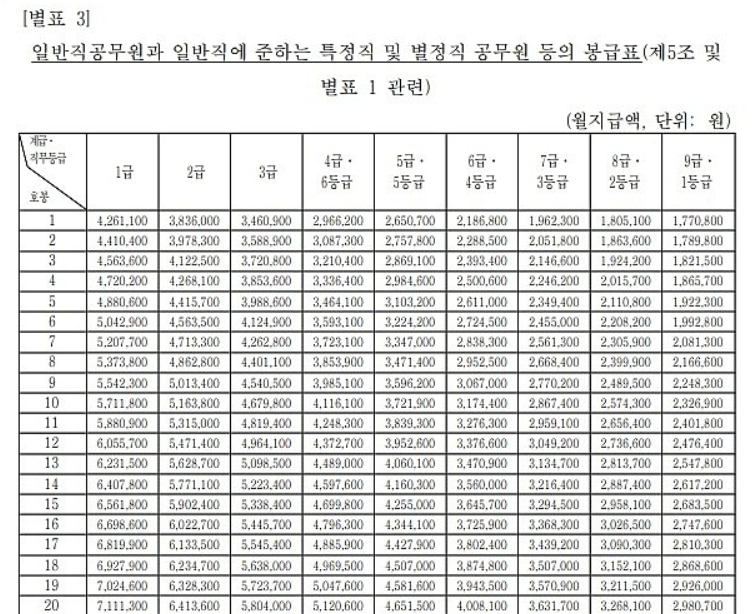 최저임금을 뛰어넘는 순간은 9급의 경우 6호봉은 되어야 하기 때문에 기타 수당등 다른 금액을 확인해야 그래도 조금 높은 연봉을 기대할 수 있을 것 같습니다.