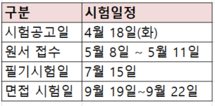 시험 일정은 나와있는 상황입니다. 시험공고는 4월 18일에 공지될 예정입니다. 원서 접수가 5월에 시작되니 준비하시는 분들은 5월에 미리미리 준비하여 원서 접수 해주시기 바랍니다.