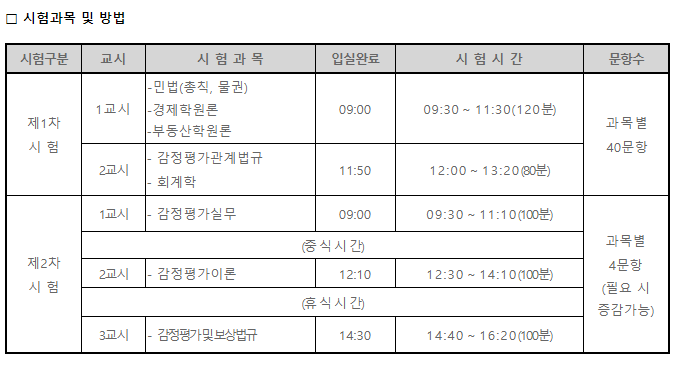 우선 시험과목만 봐도 감정평가실무와 이론, 감정평가 및 보상법규 입니다. 시험과목부터 어느 하나의 법률, 과목을 특정하지 않습니다. 주관식이며, 방대한 범위가 주어지기 때문에 애를 먹는 시험이라고 합니다.