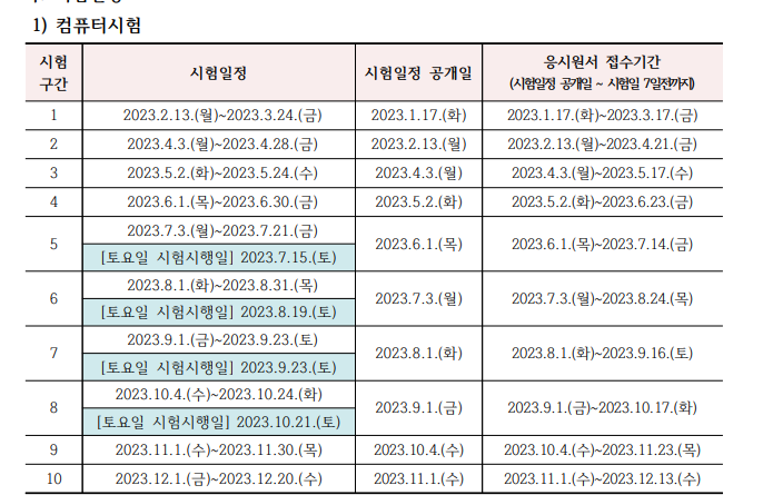 컴퓨터 시험은 매달 시험이 있고, 지필시험도 한달에 2번씩 시험이 있습니다. 그러니 거의 한달에 3번 시험이 있는 것이니 쉽게 시험을 볼 수 있다는 장점이 있습니다.