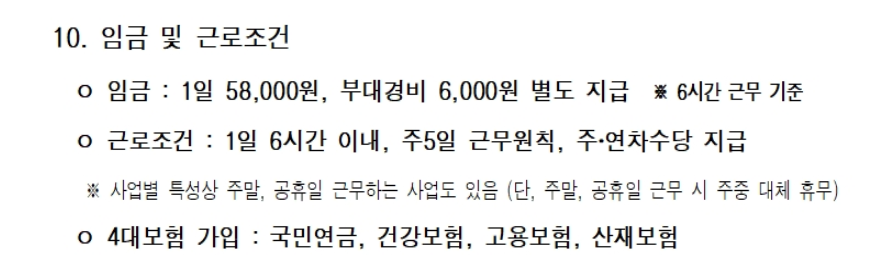 다만, 임금이나 시간등은 운영하는 지자체에 따라 차이가 있을 수 있습니다.