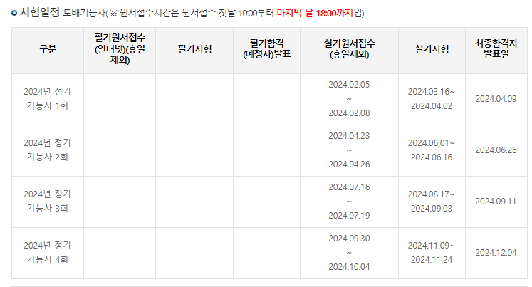 도배기능사 시험은 1년에 4번이나 시험이 시행됩니다. 이런 점은 참 다행스러운 일이죠? 기간은 아직 넉넉한 편입니다.