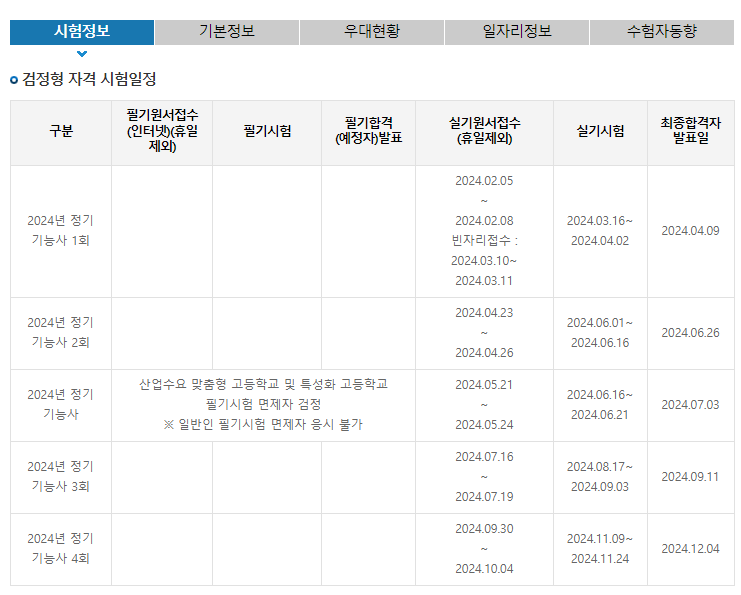 2. 타일기능사 2024년 시험일정