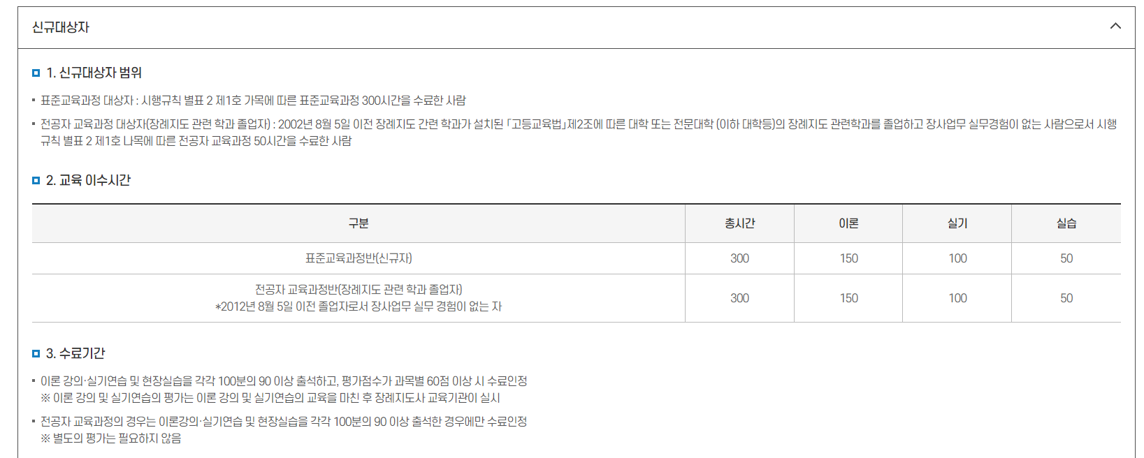 장례지도사 자격증 취득의 경우 2가지로 나누어집니다. 장례지도사 관련학과를 졸업한 경우와 그렇지 않은 경우입니다. 장례지도사 관련학과를 졸업한 경우 50시간의 교육만 받으면 되지만, 그렇지 않은 비전공자는 300시간 교육을 수료하여야 합니다.