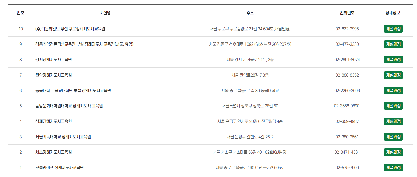 게다가 시험을 봐서 통과해야하는 것도 아닙니다. 아직까지는 교육만 이수한다면 누구나 장례지도사가 될 수 있습니다. 필수교육을 이수하고 해당 교육기관에서 자격시험을 통과하게 되면 자격증을 받을 수 있습니다.