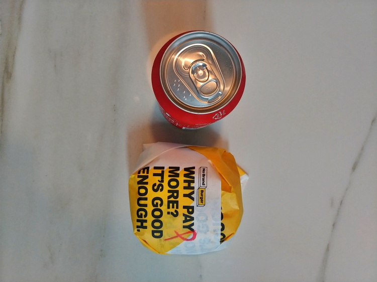 포장에 넣어주는 콜라캔과 비교했을 때 약간 더 큰 크기로 어느정도인지 가늠이 가시죠? 크기는 크지 않지만 내용물이 풍부한 노브랜드 버거라 믿고 개봉해보았습니다.