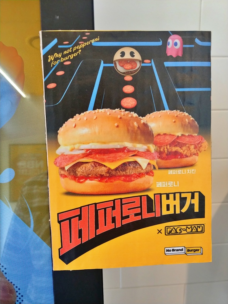 페퍼로니 버거는 소고기 패티가 있는 페퍼로니 버거와 치킨 패티인 페퍼로니 치킨 2종류가 있습니다. 저는 소고기 패티를 선호해서 페퍼로니 버거로 주문하였습니다. 팩맨을 모티브로 해서 광고하는 게 흥미롭네요!