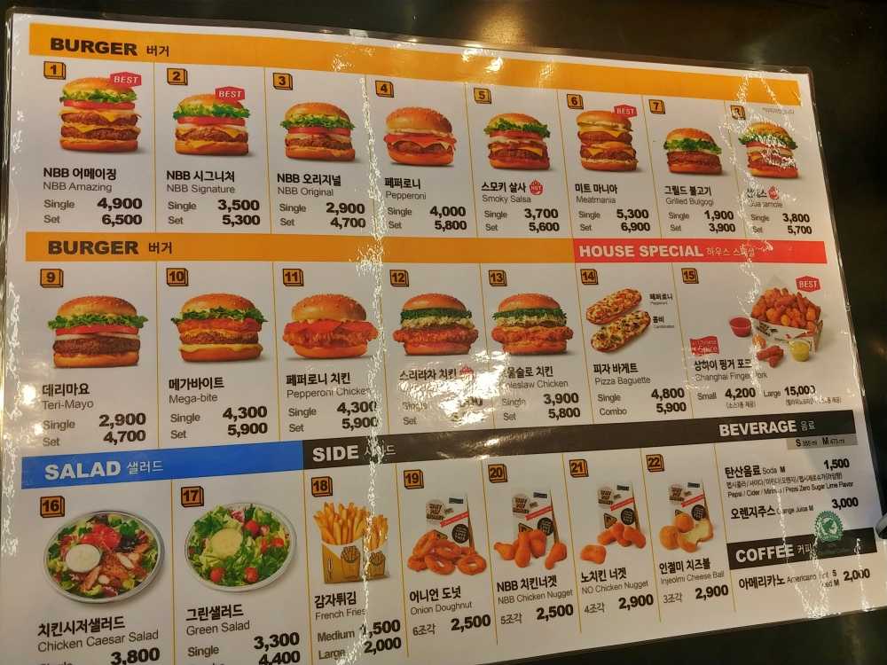 NBB오리지널이나데리마요 등은 세트 기준 5천 원 이하로도 먹을 수 있어 매우 저렴하죠! 4천 원 이하의 세트도 항시 먹을 수 있다는 게 정말 좋은 거 같아요. 맥도날드는 맥런치에서도 4천원대가 없고, 롯데리아는 착한점심에도 착하지 않은 가격이거든요.