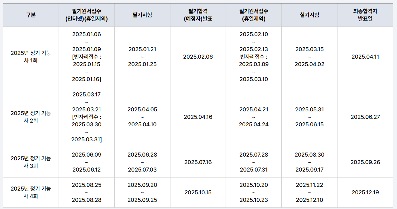 2025년 전기기능사 시험은 총 4회 시행됩니다. 4회나 시행되기에 부담은 적습니다. 1회는 이미 시행되었고 2회는 이제 필기 접수가 다가오고 있습니다. 공부를 하신 상황이라면 접수를 준비하시는 상황이라면 시험일정을 잘 참고 하시기 바랍니다.